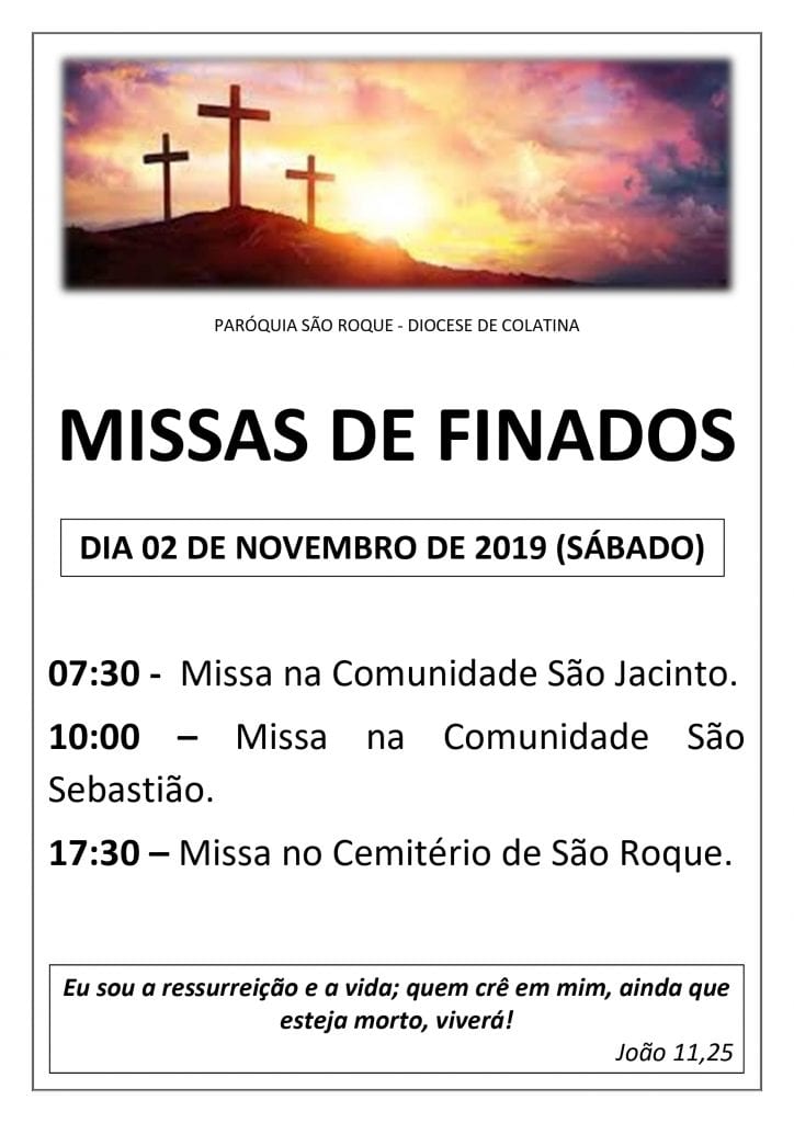 10h15 – São José – Honorato – Missa pelos fiéis defuntos com benção de flores e velas – Pe. Paulo