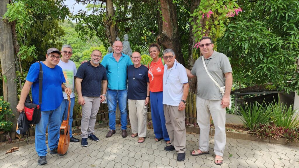Os padres Ruben, Gabriel e o diácono Vito, que estão servindo na Paróquia Cristo Rei, de Sooretama, participaram do momento que também contou com a presença dos padres Paolo, Marcelo e Márcio, além da irmã na diaconia Lúcia Helena, que vieram da Paróquia Nossa Senhora de Fátima, de Belford Roxo (RJ), Diocese de Nova Iguaçu.