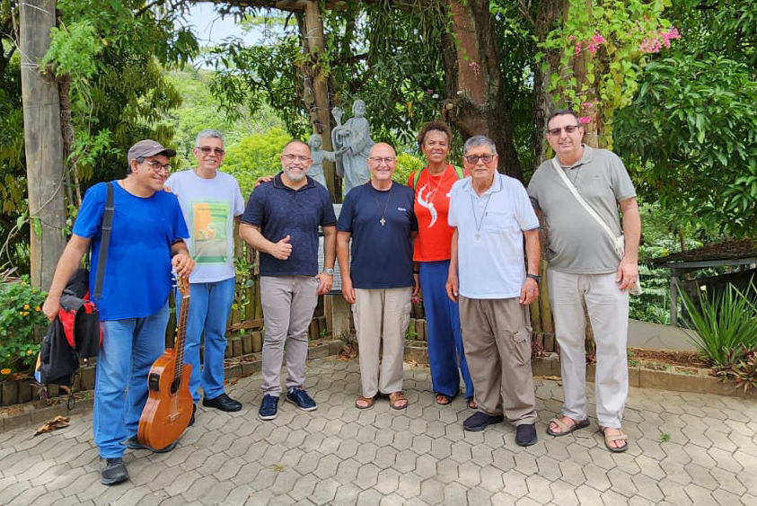 Os padres Ruben, Gabriel e o diácono Vito, que estão servindo na Paróquia Cristo Rei, de Sooretama, participaram do momento que também contou com a presença dos padres Paolo, Marcelo e Márcio, além da irmã na diaconia Lúcia Helena, que vieram da Paróquia Nossa Senhora de Fátima, de Belford Roxo (RJ), Diocese de Nova Iguaçu.