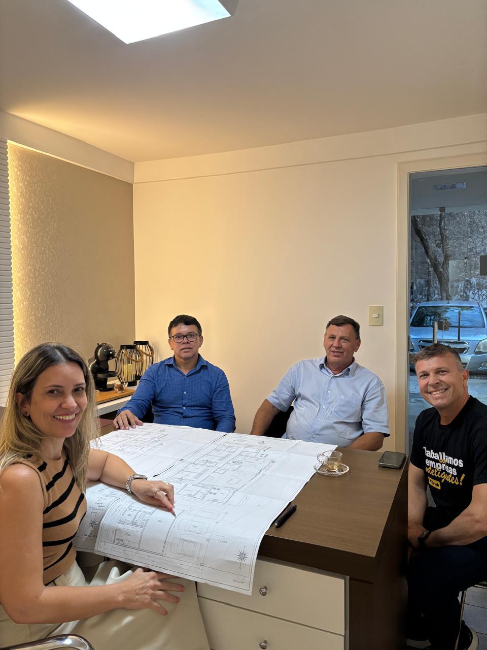 Durante a reunião, foi apresentada a planta baixa das futuras instalações, possibilitando uma análise inicial da estrutura e funcionalidade do espaço proposto. Algumas considerações técnicas foram levantadas e ajustes foram discutidos, visando garantir que o projeto atenda plenamente às necessidades dos futuros residentes.