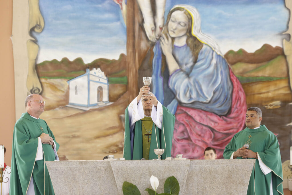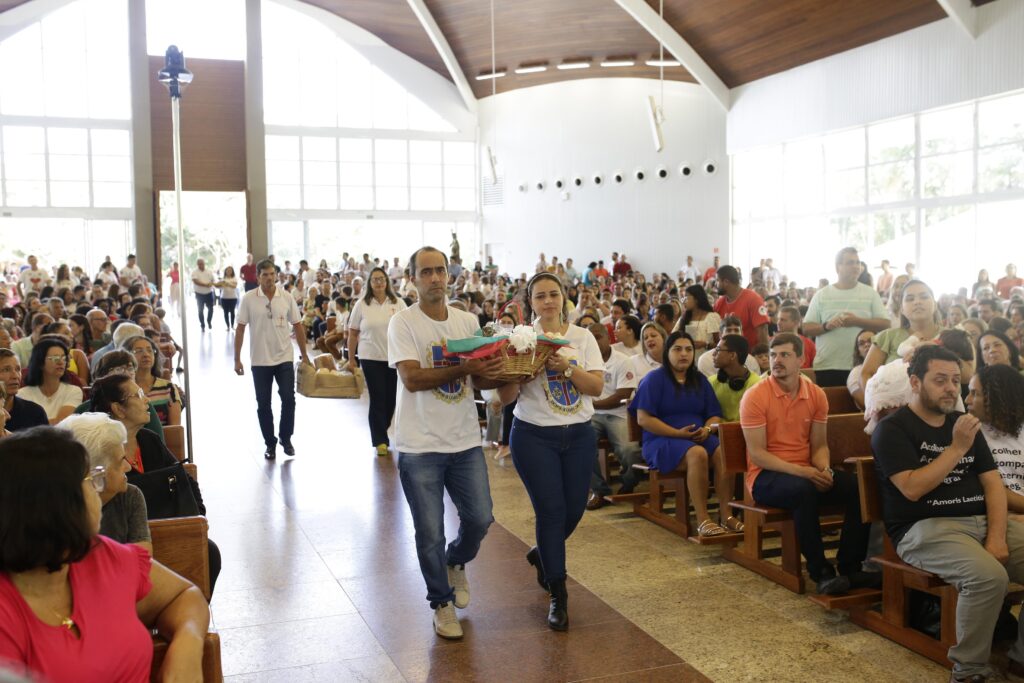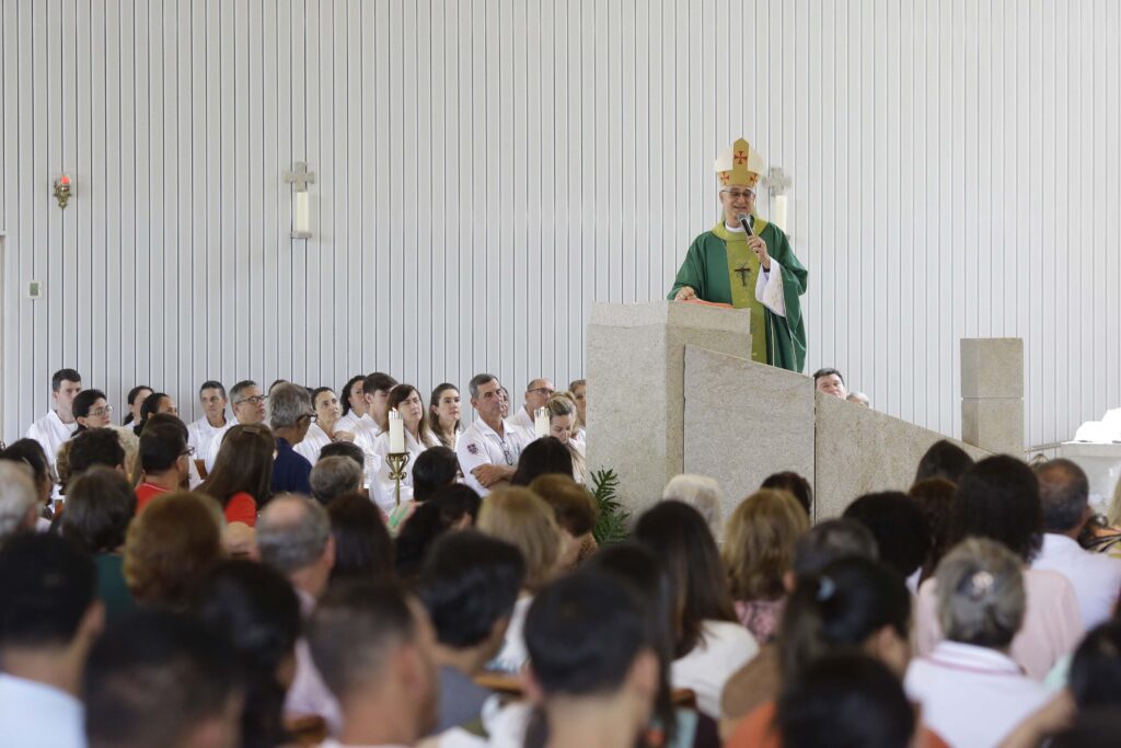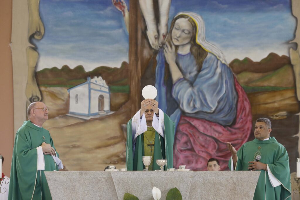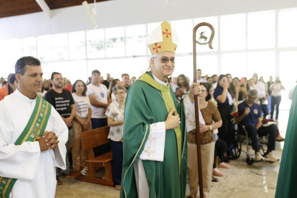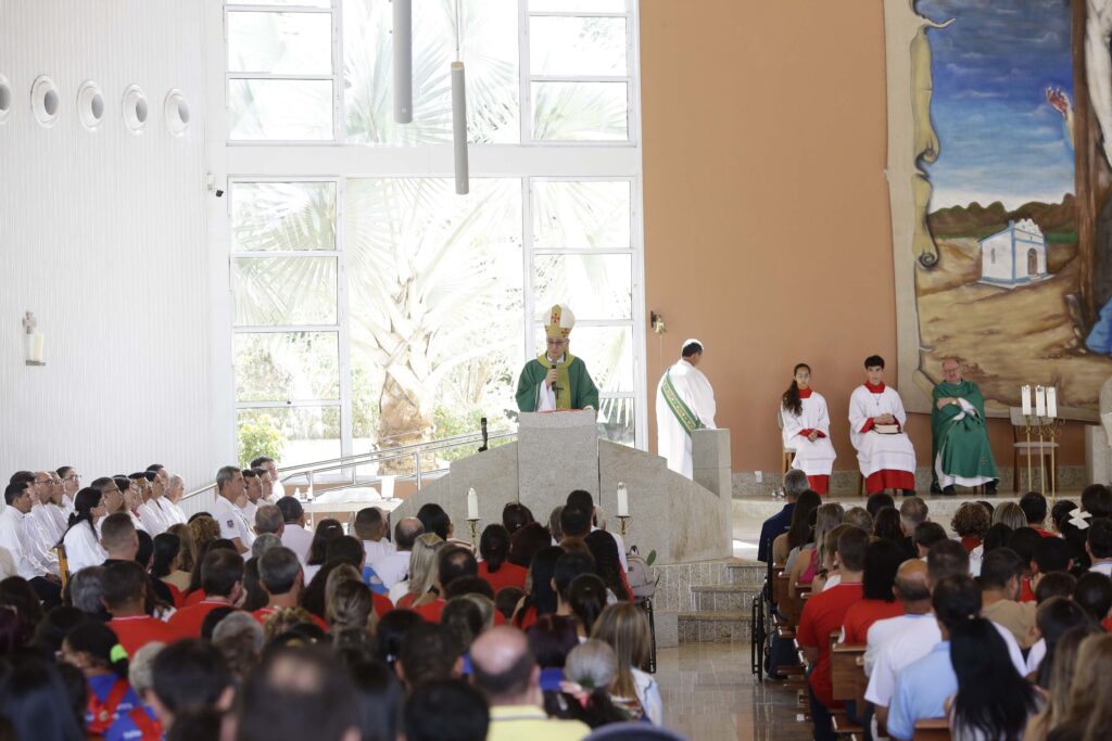 A missa foi presidida pelo bispo diocesano, Dom Lauro Sérgio Versiani Barbosa, e concelebrada pelo reitor do Santuário, padre Luismar Passarelli, pelo assessor espiritual do ECC, padre Cremilson Silva Gomes, e pelo assessor da Pastoral Familiar, o diácono permanente Jorcelino Elias.