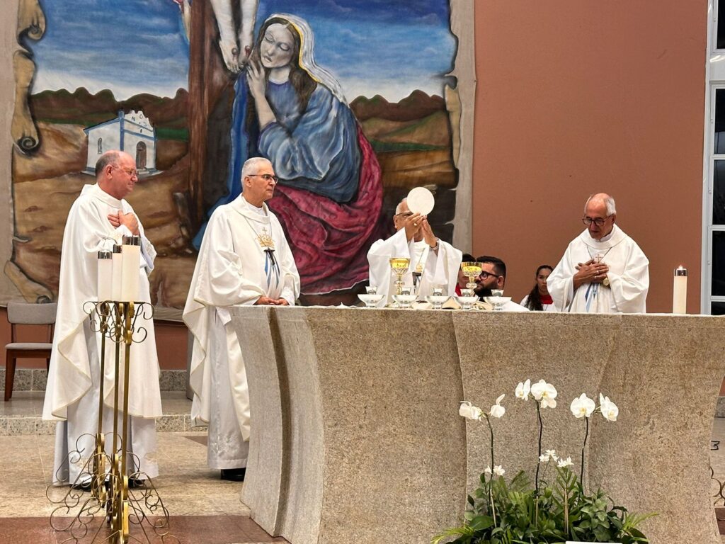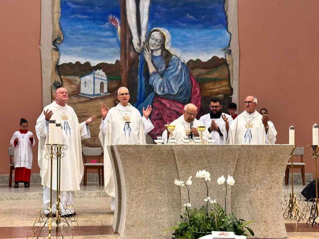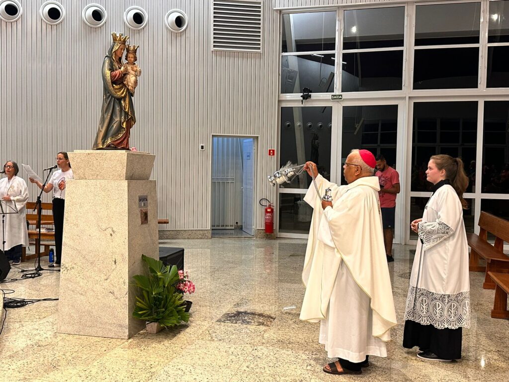 A missa que marcou esse momento foi presidida pelo arcebispo metropolitano de Vitória, dom Dario Campos, e concelebrada pelo bispo diocesano de Colatina, dom Lauro Sérgio Versiani Barbosa, pelo bispo emérito de Colatina, dom Décio Sossai Zandonade, e pelo reitor do Santuário, padre Luismar Passarelli.