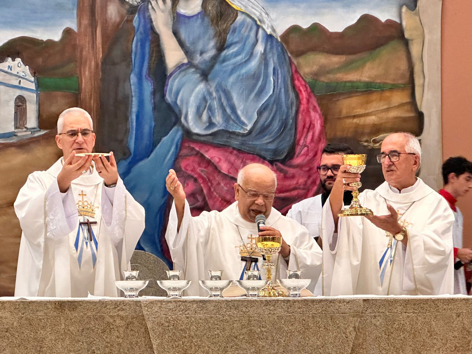 A missa que marcou esse momento foi presidida pelo arcebispo metropolitano de Vitória, dom Dario Campos, e concelebrada pelo bispo diocesano de Colatina, dom Lauro Sérgio Versiani Barbosa, pelo bispo emérito de Colatina, dom Décio Sossai Zandonade, e pelo reitor do Santuário, padre Luismar Passarelli.