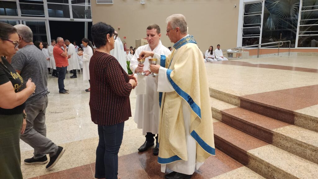 A missa foi presidida pelo pároco, padre Antonio Luiz Pandolfi, e concelebrada pelo reitor, padre Luismar Passarelli.
