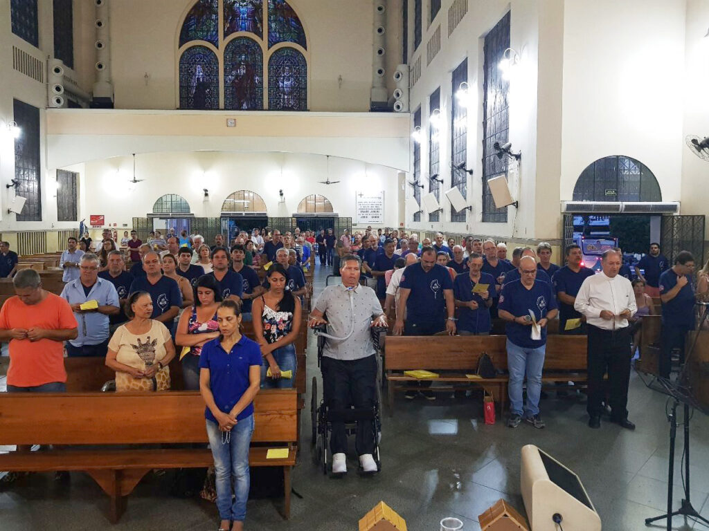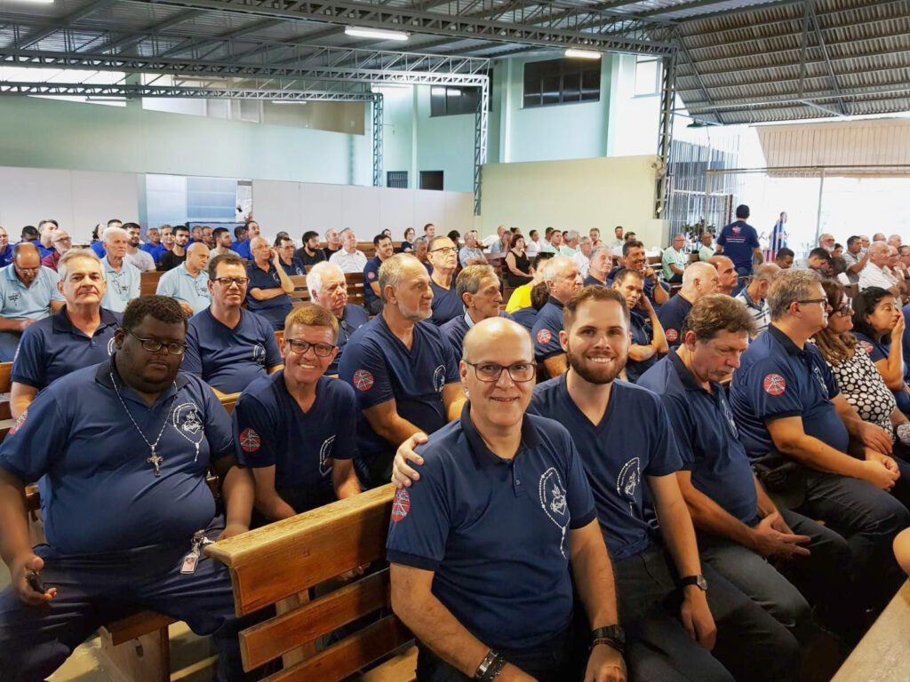 R: Nós rezamos juntos, em comunidade, toda segunda-feira a partir das 18h10, na Catedral de Colatina, e a grande maioria dos homens tem o hábito de rezar o terço em casa todos os dias, ou quando está caminhando, viajando, aguardando algum compromisso ou em outros momentos. Rezamos, ainda, nas comunidades ou paróquias de nossa área pastoral ou na Diocese, pois estamos sempre visitando os grupos, para fortalecimento do movimento.