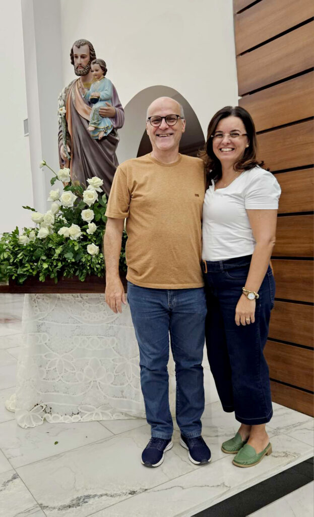 O casal “Nino” e Karla. 37 anos de união, sob as bênçãos de Deus e de São José.07) Há quantos membros do Terço dos Homens na Paróquia do Sagrado Coração de Jesus? Como é a frequência?